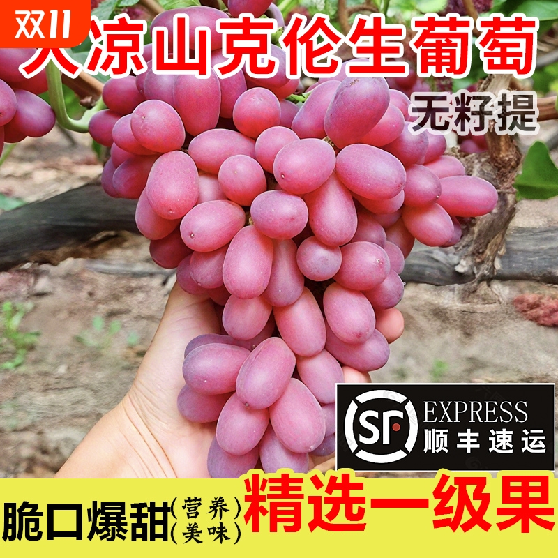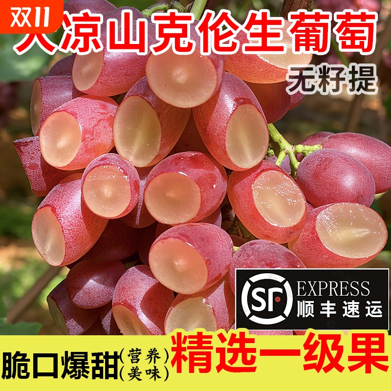 顺丰包邮大凉山纯甜无籽克伦生红提葡萄应季水果现摘现发应季水果