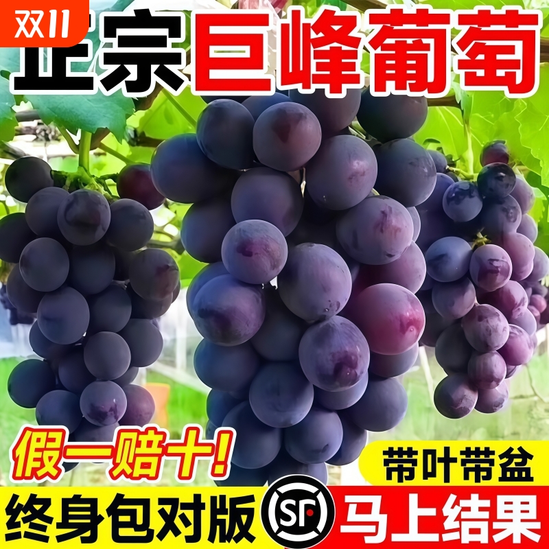 阳光玫瑰葡萄带土巨峰树苗盆地栽种植当年结果夏黑蓝宝石皇后果树