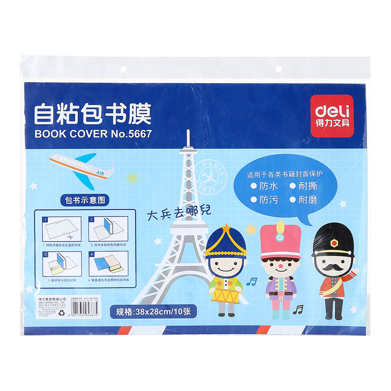 得力5667自粘书膜小学生书皮书套 一体化包书皮 透明保护套小号