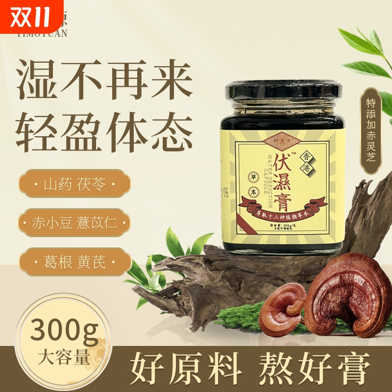 香港草本伏湿膏300g/瓶薏苡仁灵芝茯苓芡实冲饮茶清湿膏古法熬制
