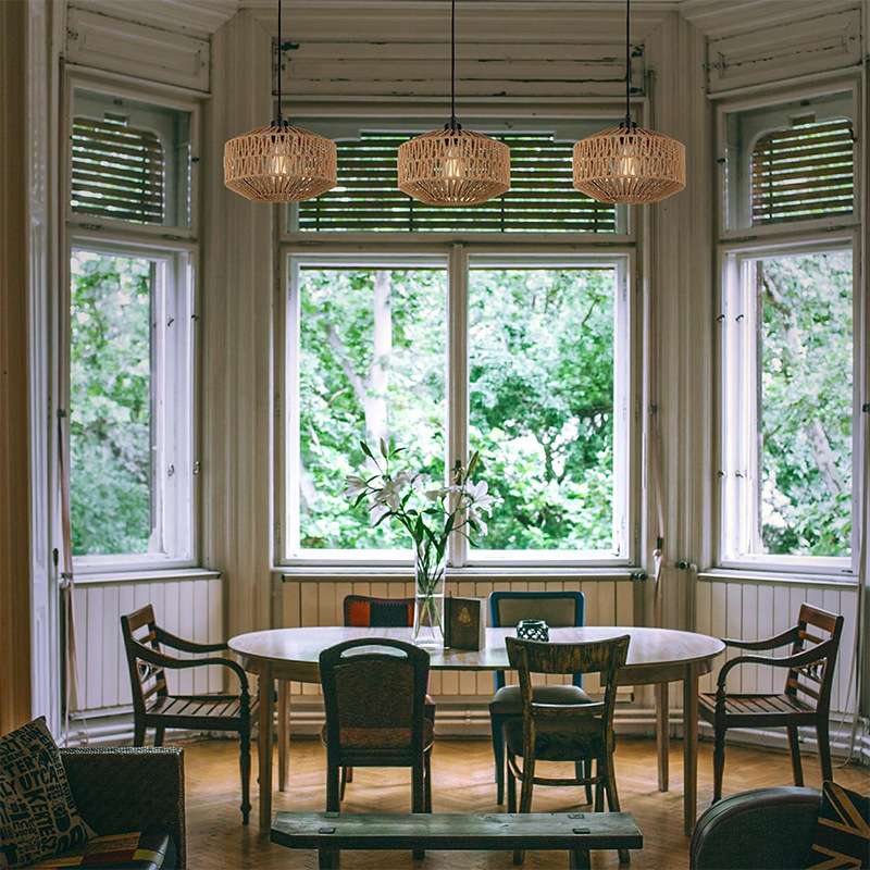 跨境单头书房led餐厅吊灯东南亚吧台床头中山灯具灯饰藤艺吊灯
