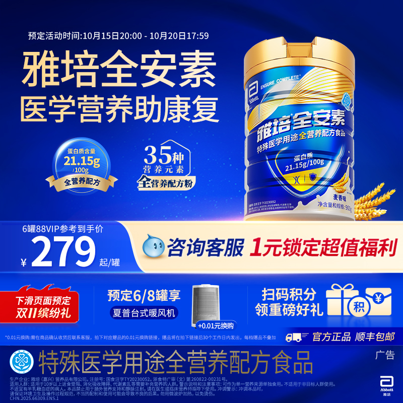 新一代雅培全安素全营养配方粉肠内营养含蛋白质粉官方旗舰店送礼