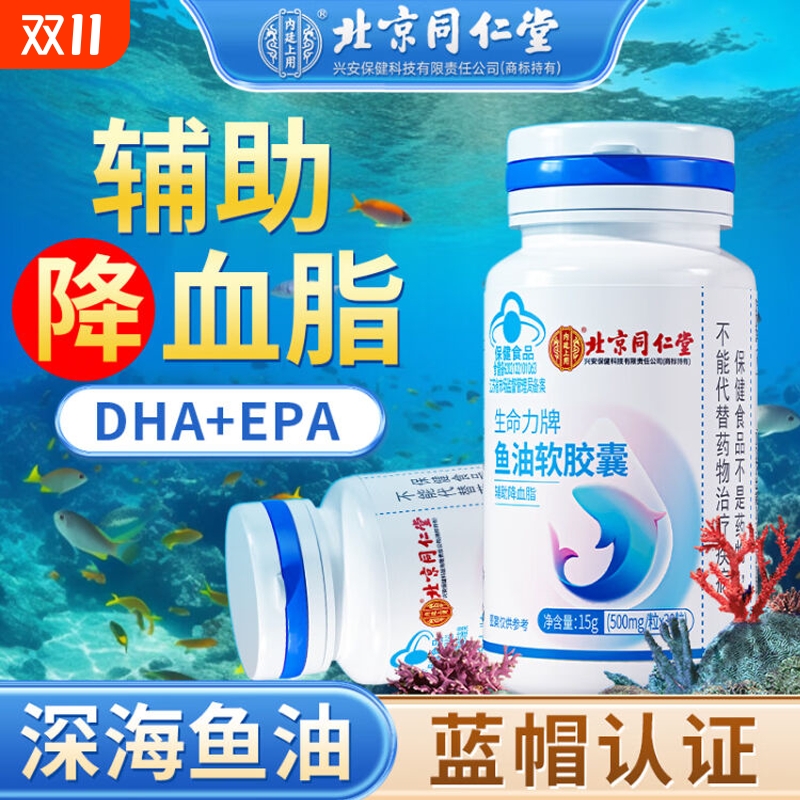 同仁堂深海鱼油软胶囊辅助绛血脂中老年鱼肝油官方旗舰店官网 N