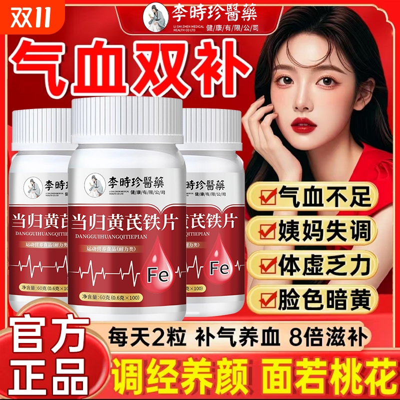 李时珍医药当归黄芪铁片补铁补血气血虚经期紊乱养血调理女性补血