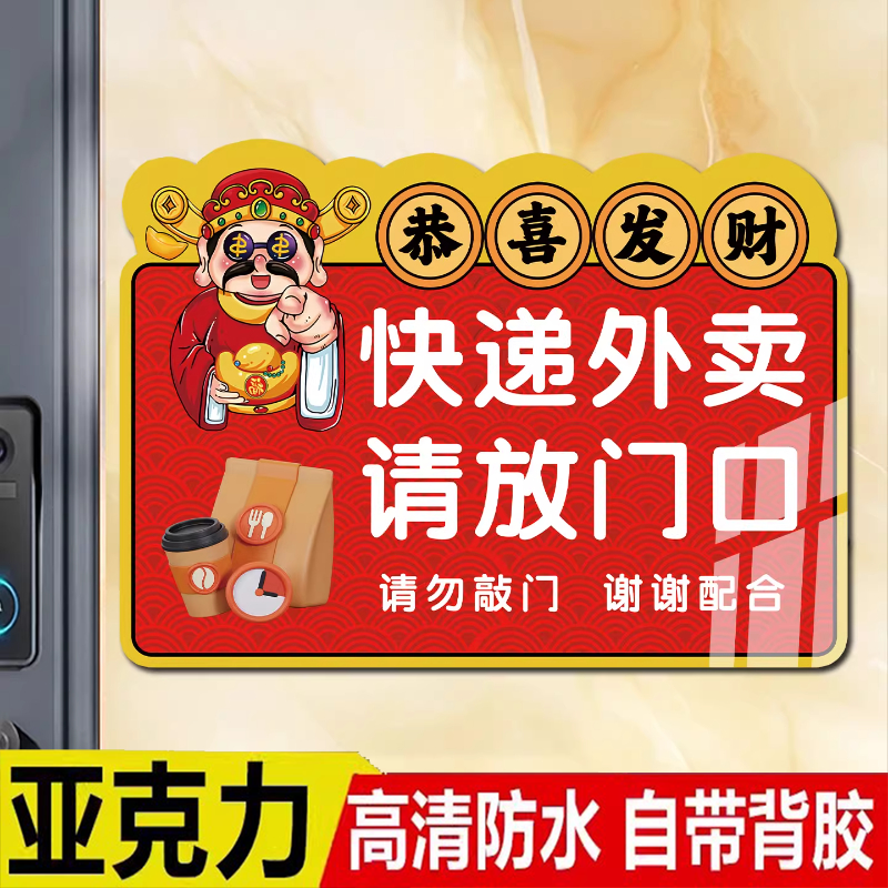 外卖放门口指示牌标识牌定制快递外卖放门口不要敲门提示牌亚克力门牌