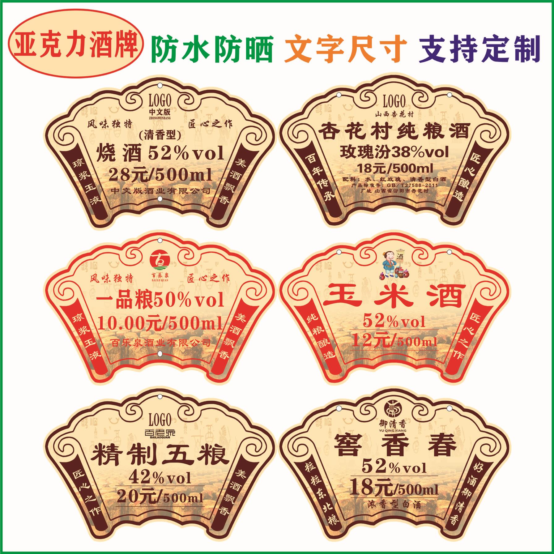 酒牌定制酒瓶价格牌亚克力展示牌表示牌提示牌百老泉个人酒坊定制