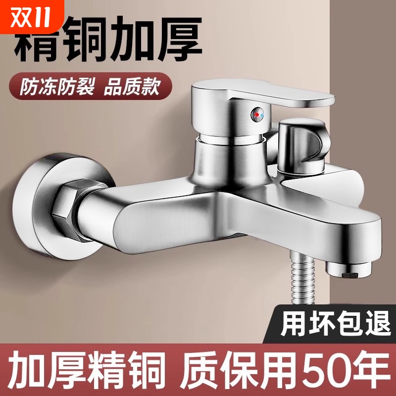 淋浴水龙头混水阀全铜浴室三联开关冷热花洒全套装入墙增压热水