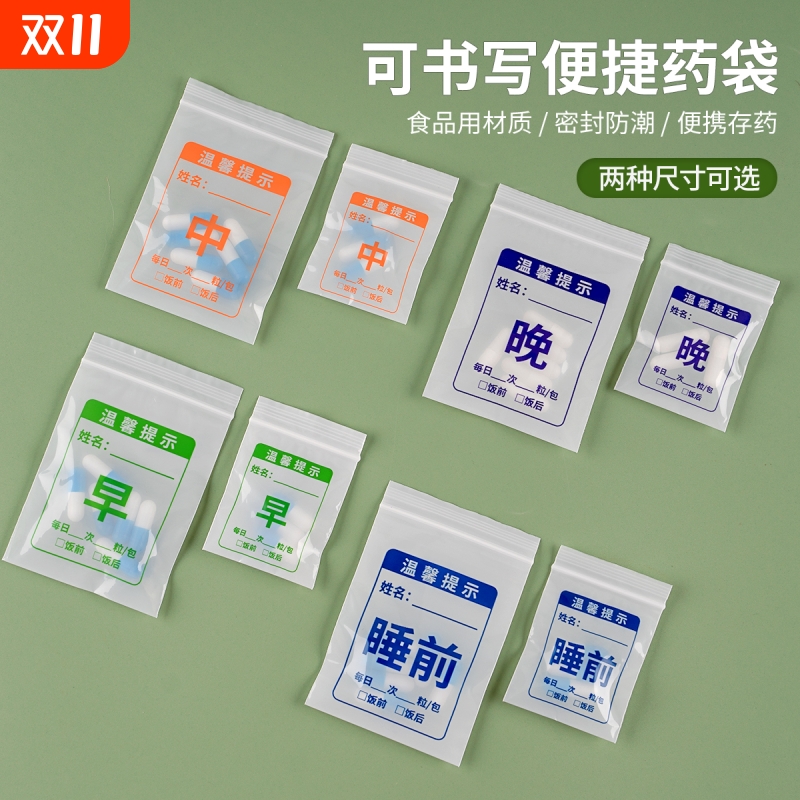 药袋早中晚西药内服药一次性分装小号塑料密封袋自封袋便携旅行