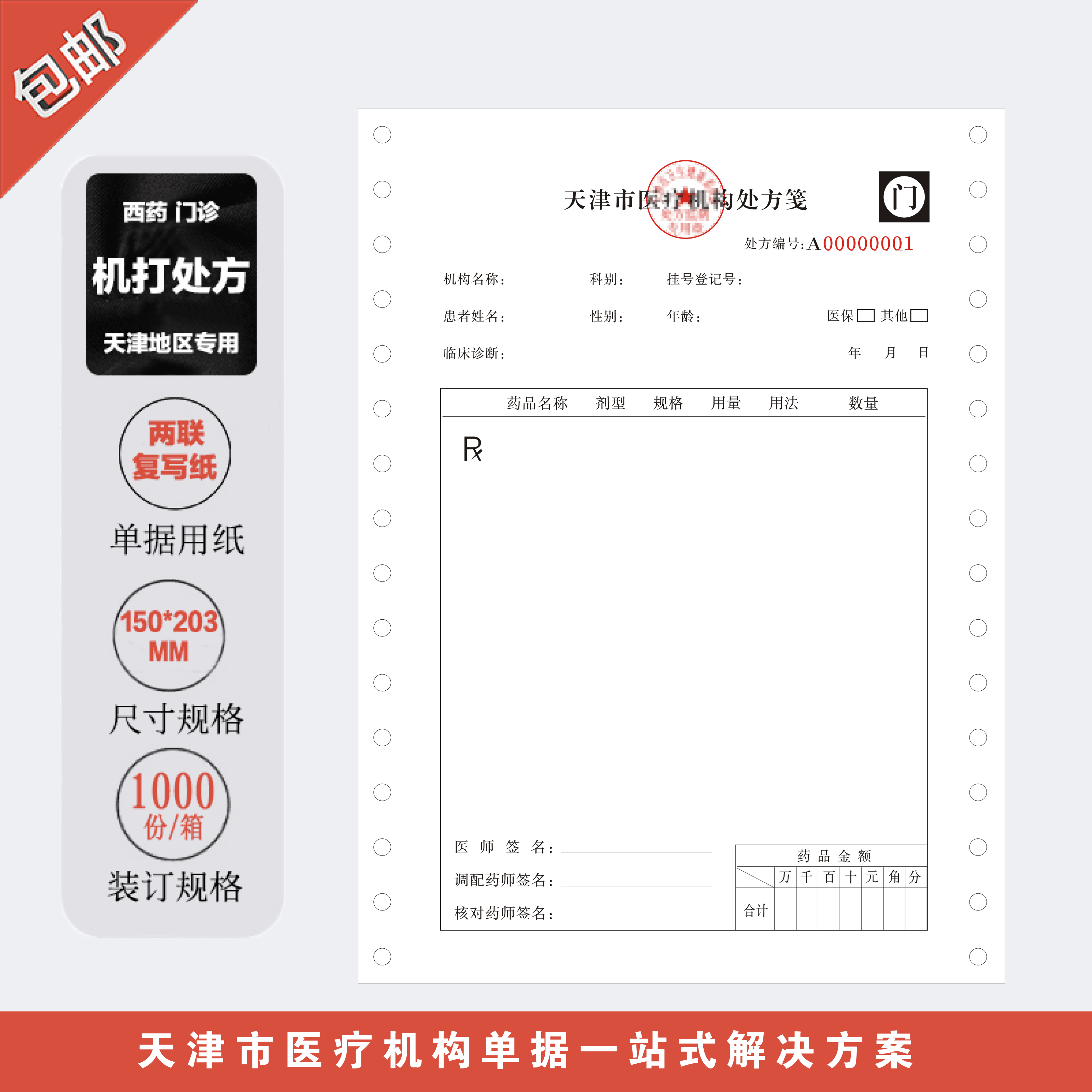 天津市医疗机构处方笺机打处方西医西药机打处方整箱包邮