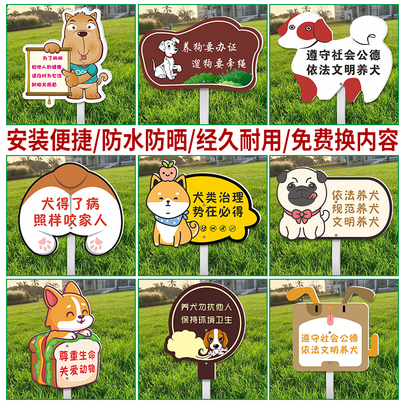 文明养狗提示牌养犬要办证文明遛狗标志牌文明社区文明养犬提示牌
