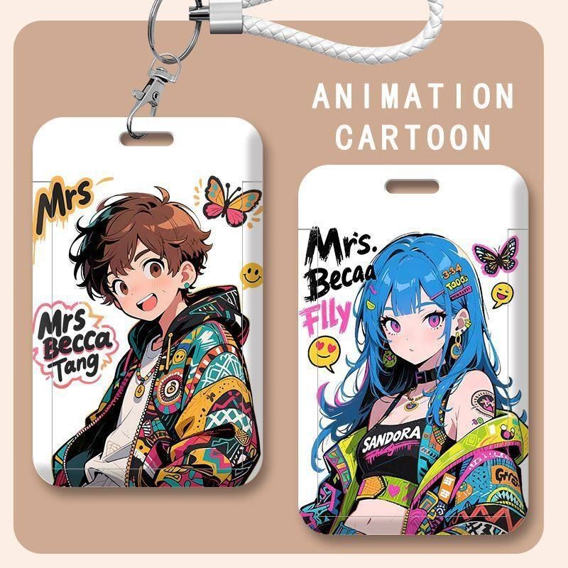 跨境KPOP亚克力卡套二合一亚克力挂件钥匙扣长款挂脖彩绳证件卡套