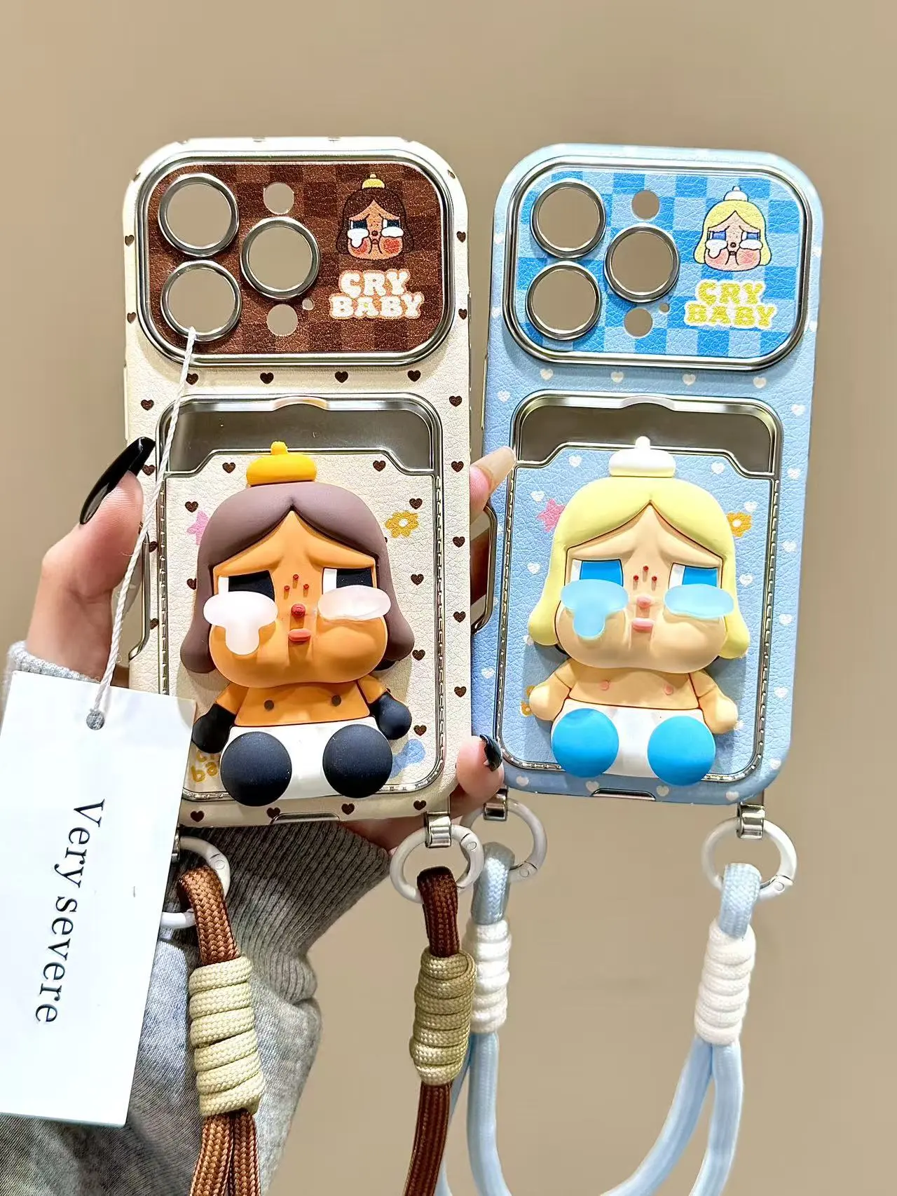 可爱立体哭泣女孩大视窗手拎绳适用苹果16promax手机壳15i