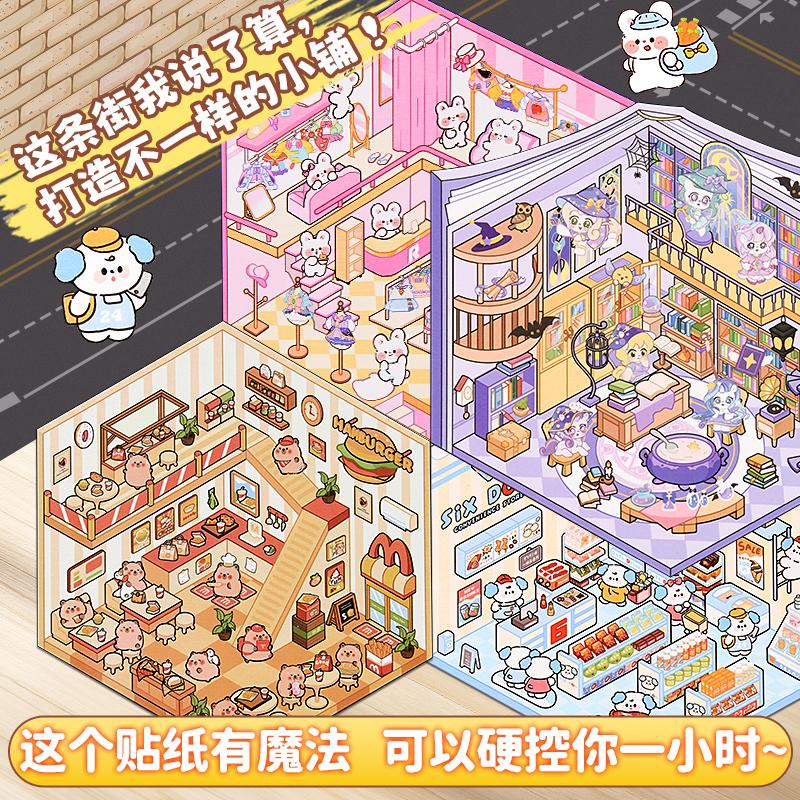 微缩场景免裁剪造景场景贴纸本3D视D觉叠堆立体小屋儿童男女孩di