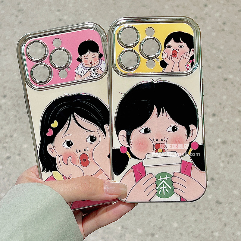 ins趣味可爱推拉大视窗小女孩卡通挂件适用iphone16pro
