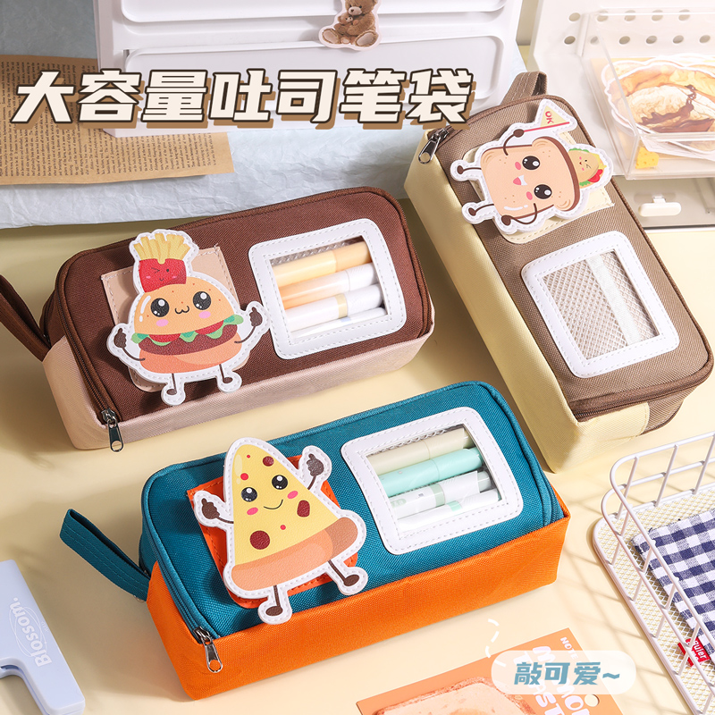 吐司面包笔袋可视窗大容量高颜值可爱女孩新款ins风文具盒小学生一