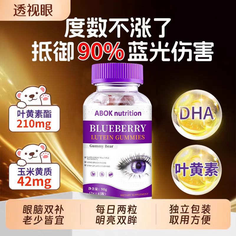蓝莓叶黄素酯果汁软糖儿童护片青少年成人正品官方旗舰店强视眼睛