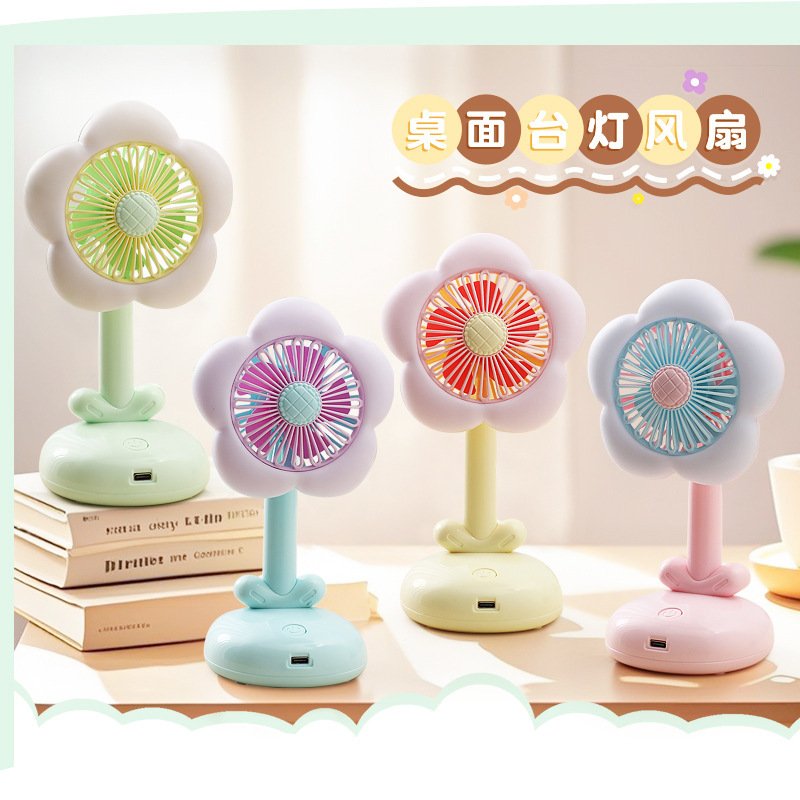 桌面花朵台灯风扇USB充电带灯光办公室宿舍学生夏天吹风解暑解热