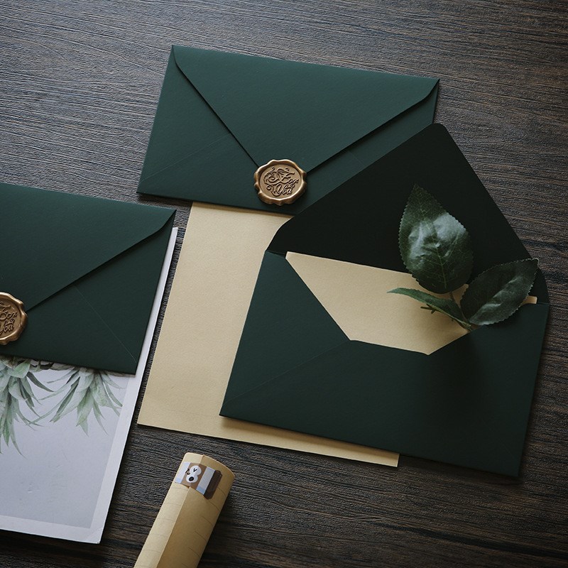 墨绿信封信纸套装复古风情书中国C风牛皮纸特种纸请柬火漆触感信