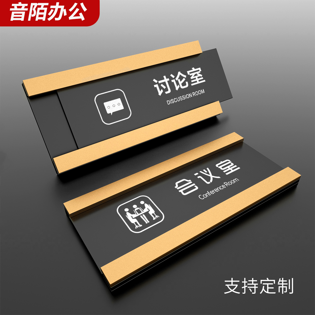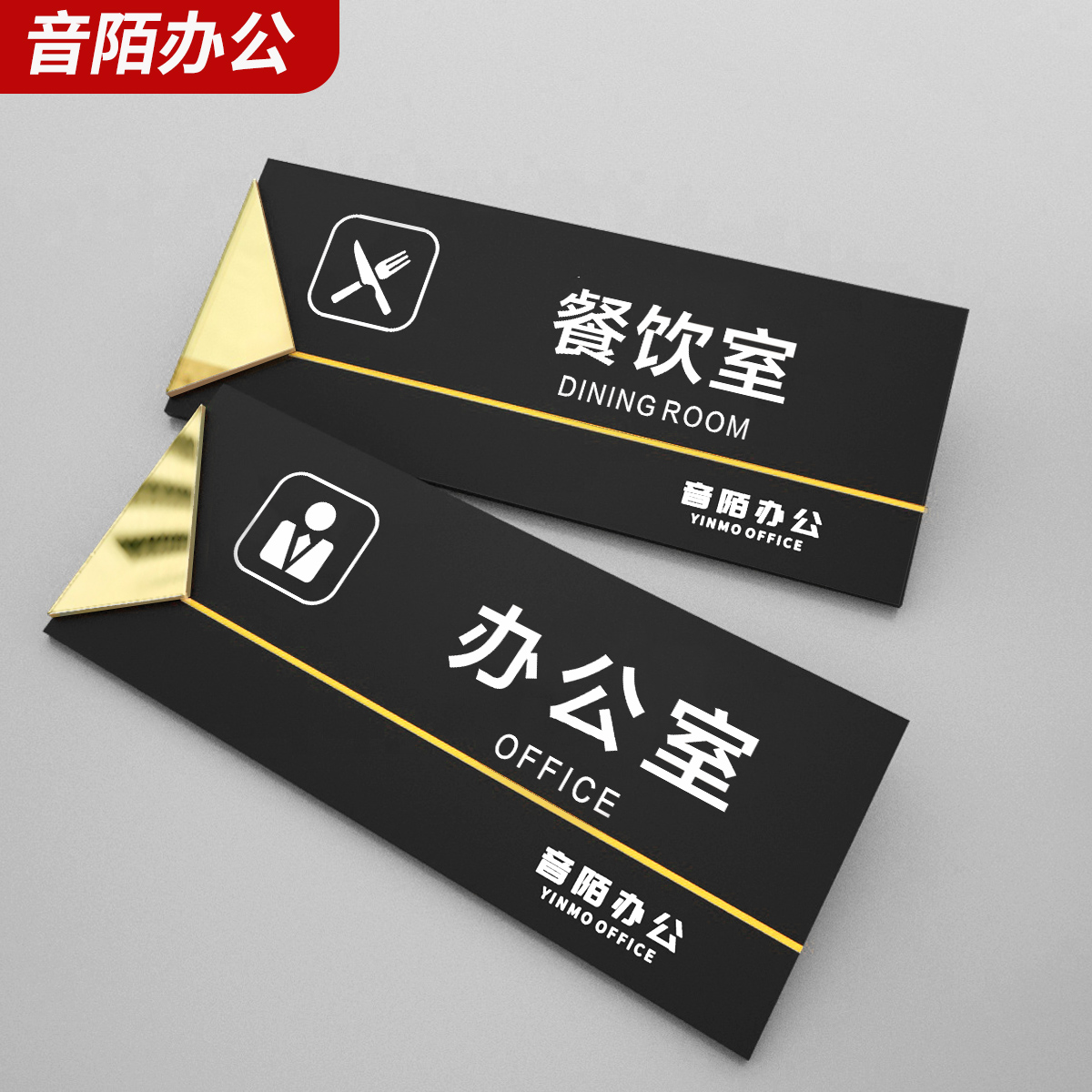 音陌办公磨砂办公室门牌金色镜面
