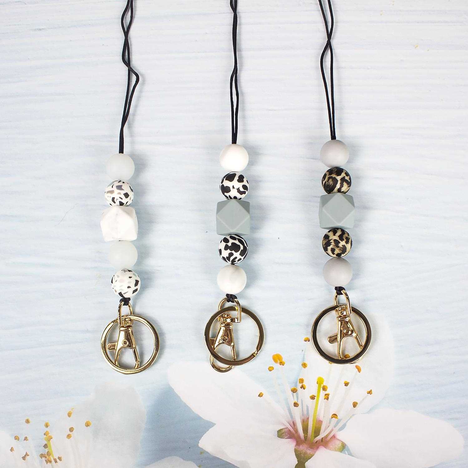 新款直销欧式时尚创意硅胶串珠挂绳 亚马逊跨境挂l牌工作证实用钥