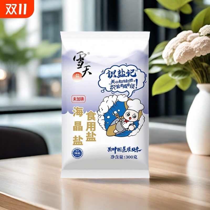 雪天食用盐识盐记未加碘低钠300g井矿小包装家用细盐调味料无碘