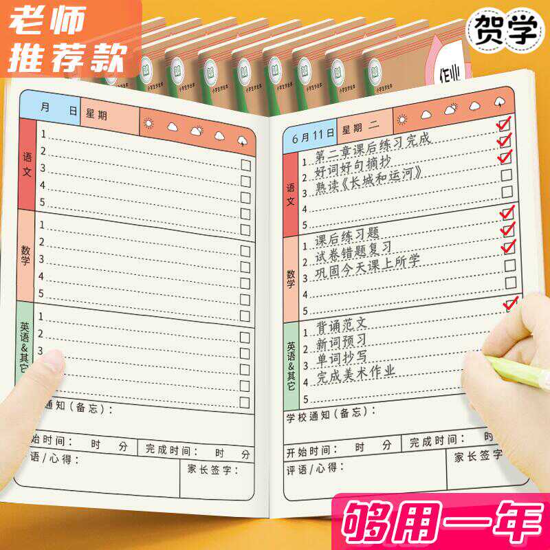 课堂家庭作业登记本小学生通用作业记录本加厚记课堂抄作业本二三四五