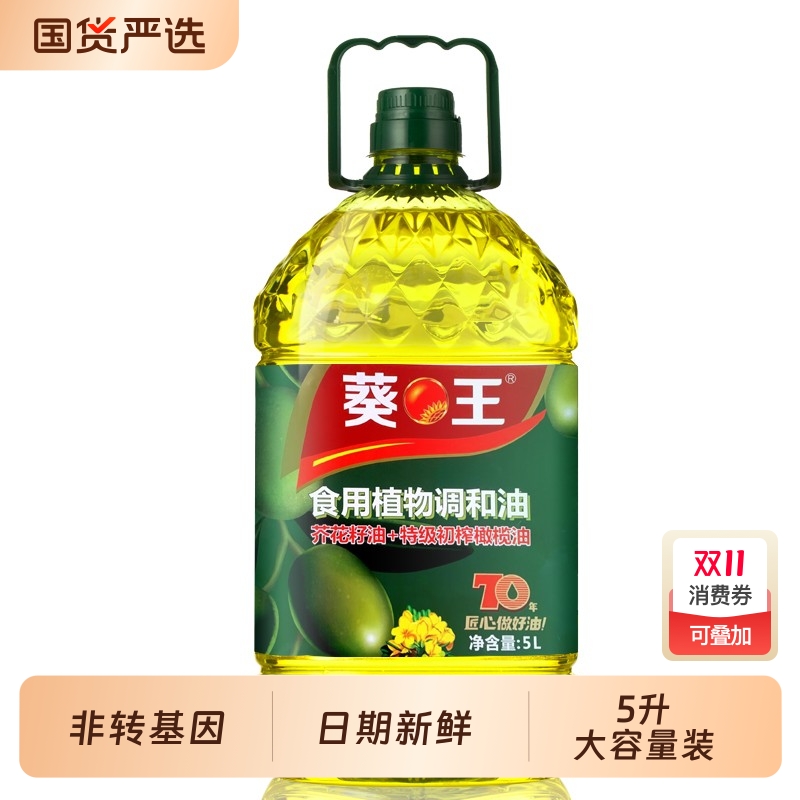 葵王芥花橄榄食用植物调和油5L 添加特级初榨橄榄油