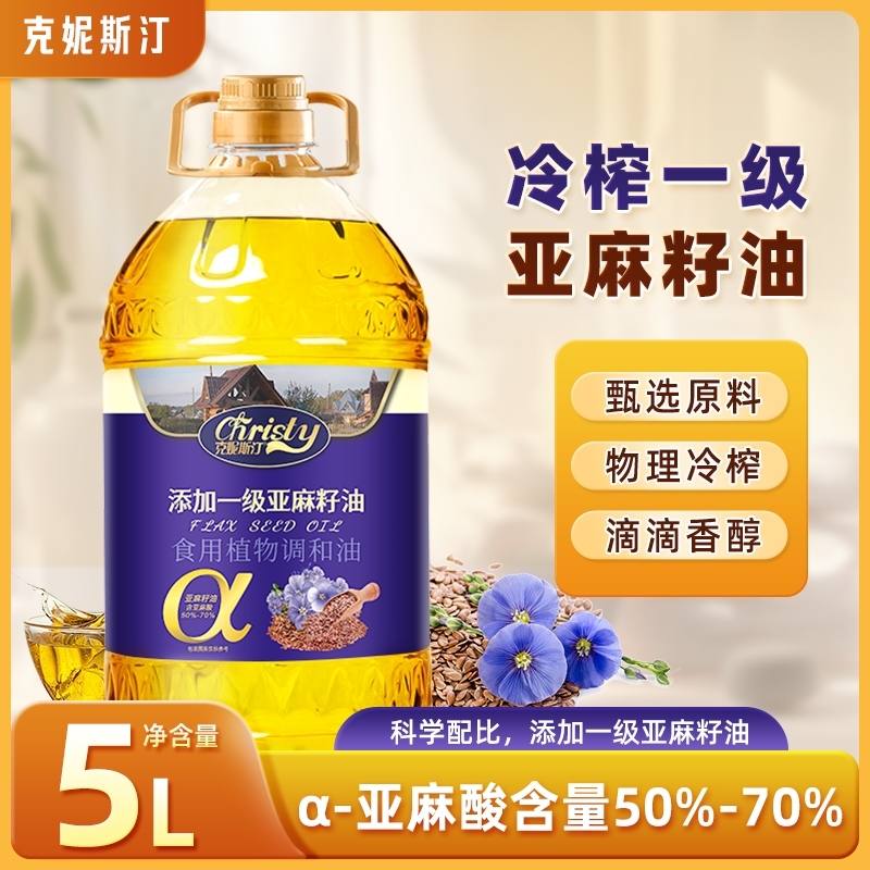 添加一级压榨亚麻籽油食用油5L冷榨桶装植物调和油炒菜