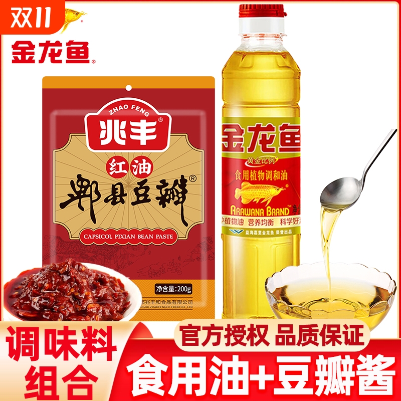 金龙鱼调和油400ml+豆瓣酱组合调味料火锅肉川菜宿舍家用食用油