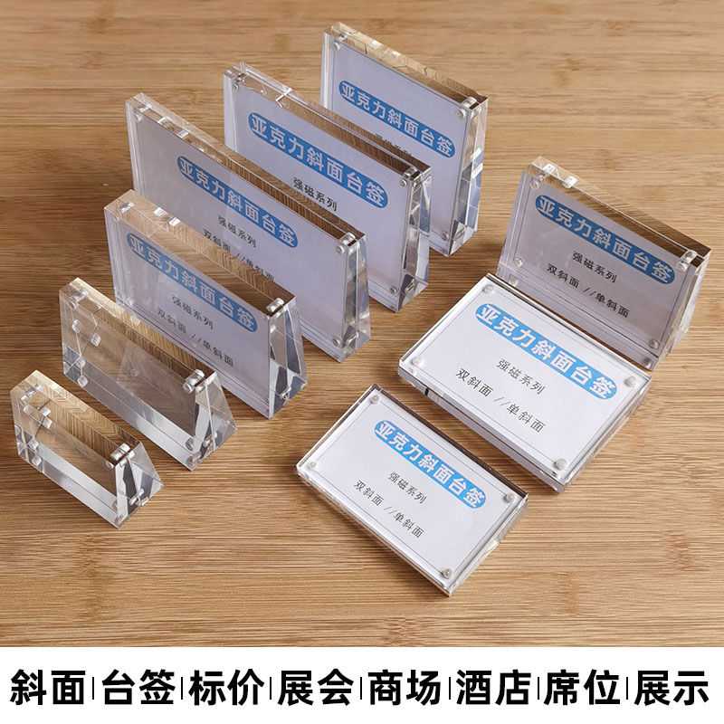 强磁梯形价亚克力斜面台签价格会议水晶磁性桌台台卡
