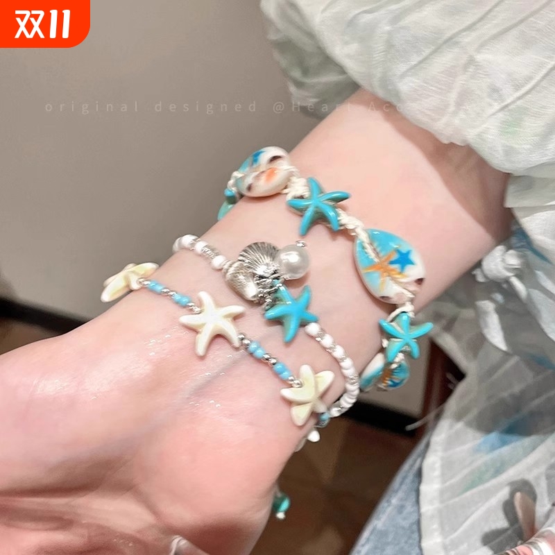 2025新款海边度假~蓝色贝壳海星手链女海岛串珠配饰手串叠戴手饰