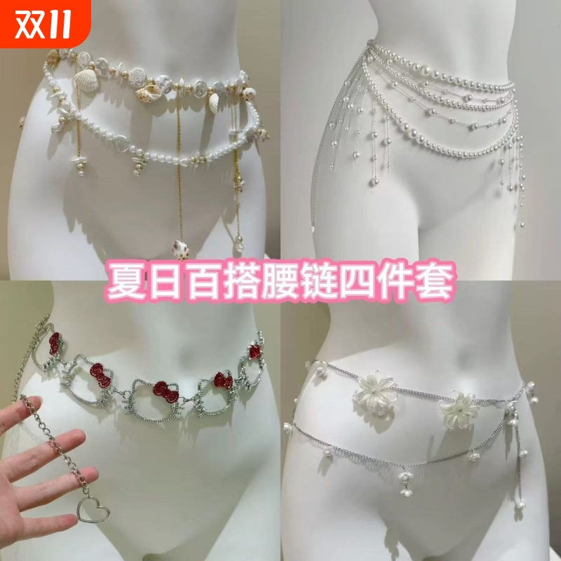 仿珍珠贝壳度假风腰链腰带