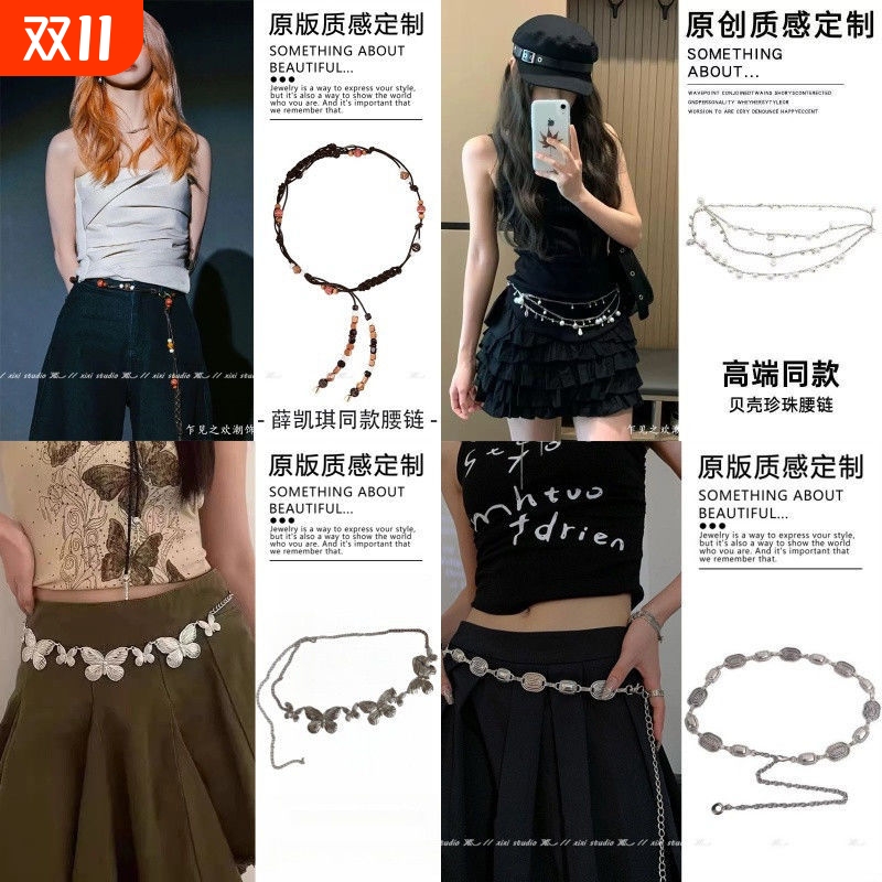 薛凯琪同款波西米亚串珠腰链腰带女款编绳腰部配饰贝壳蝴蝶毛衣链