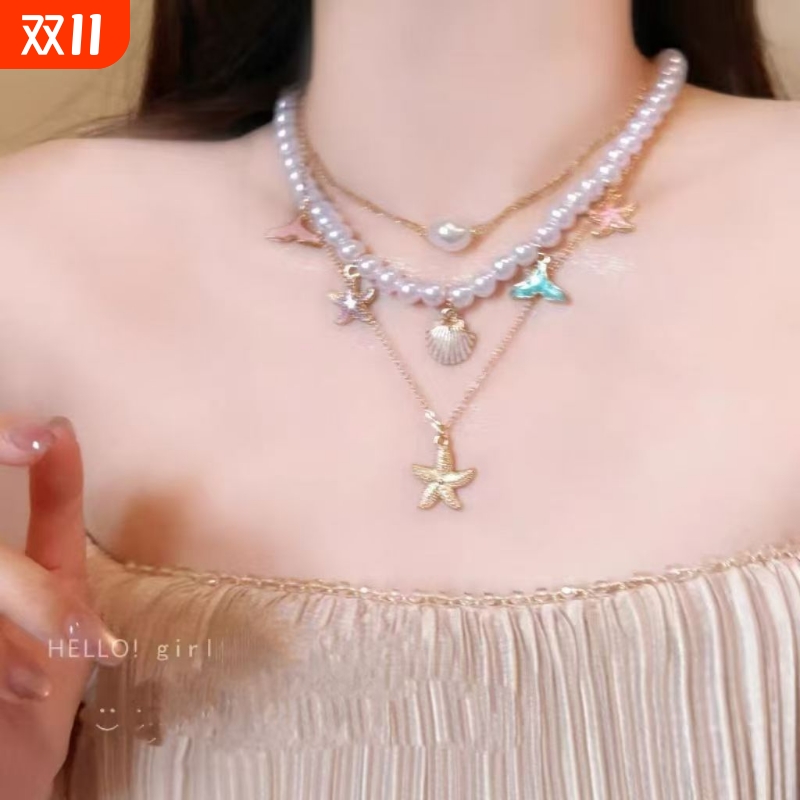 波西米亚风贝类海星串珠项链女款适合夏天戴的锁骨链海边度假配饰