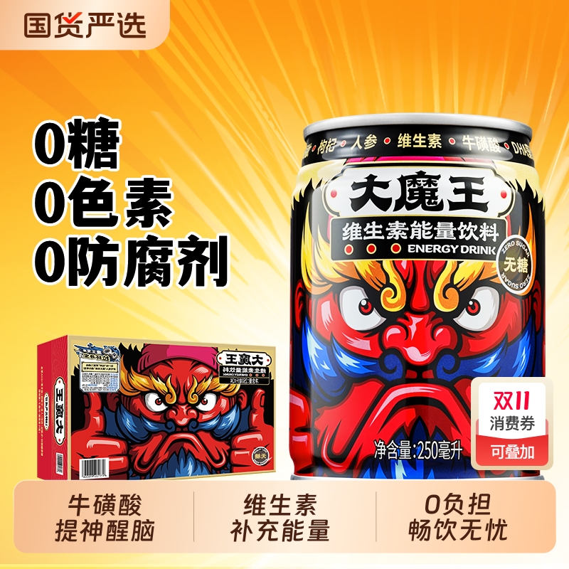 大魔王牛磺酸维生素0糖0脂0卡0负担提神醒脑补充能量功能饮料罐装