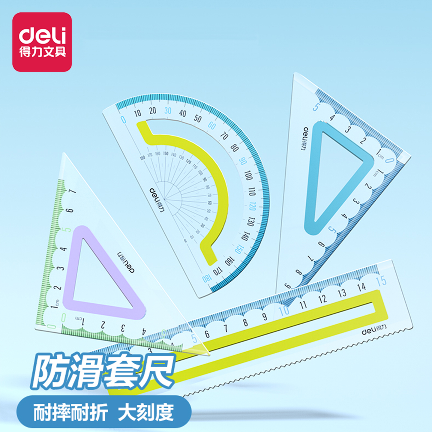 得力x元气森林环保套尺学生不费眼大数字尺子四件套三角尺直尺格尺量