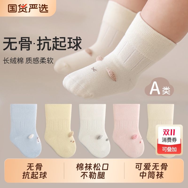 婴儿袜子春秋0到3个月1岁宝宝棉袜无骨中筒袜儿童精梳棉不起球