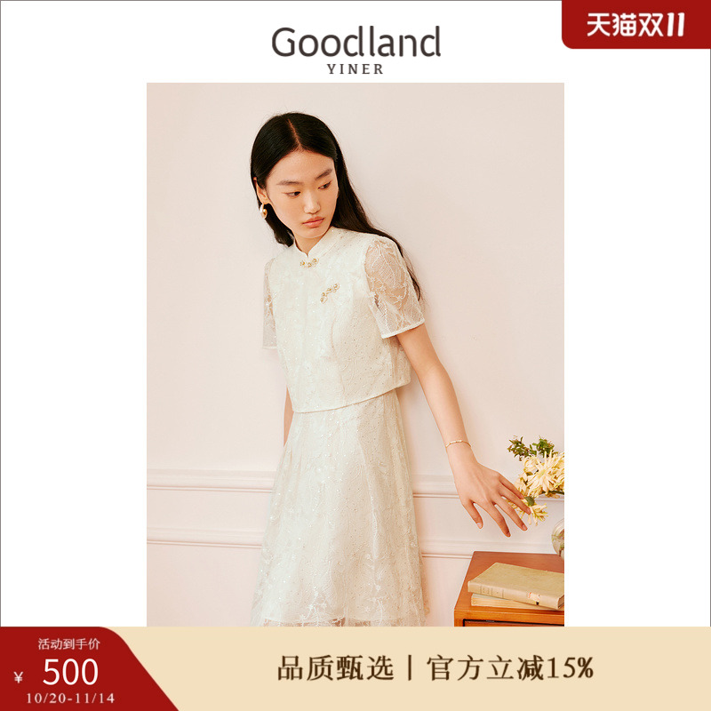 【新中式】Goodland美地女装夏季假两件国风旗袍连衣裙