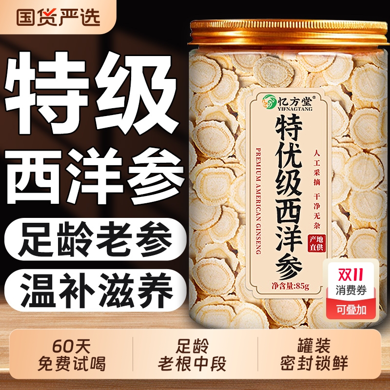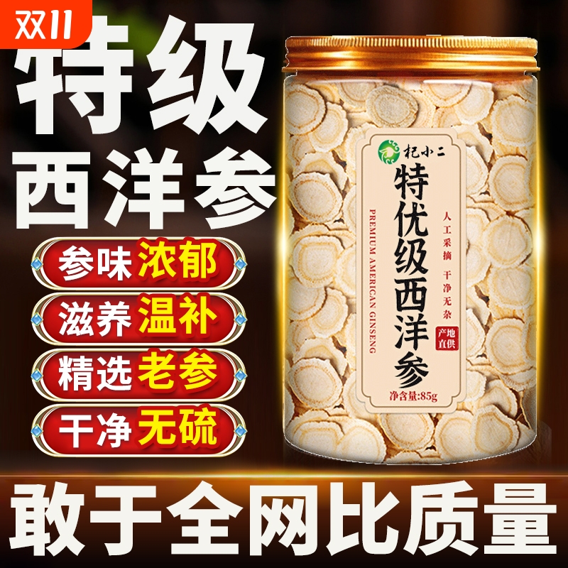 西洋参官方旗舰店正品切片500g特级中药材泡水含片长白山足年大片