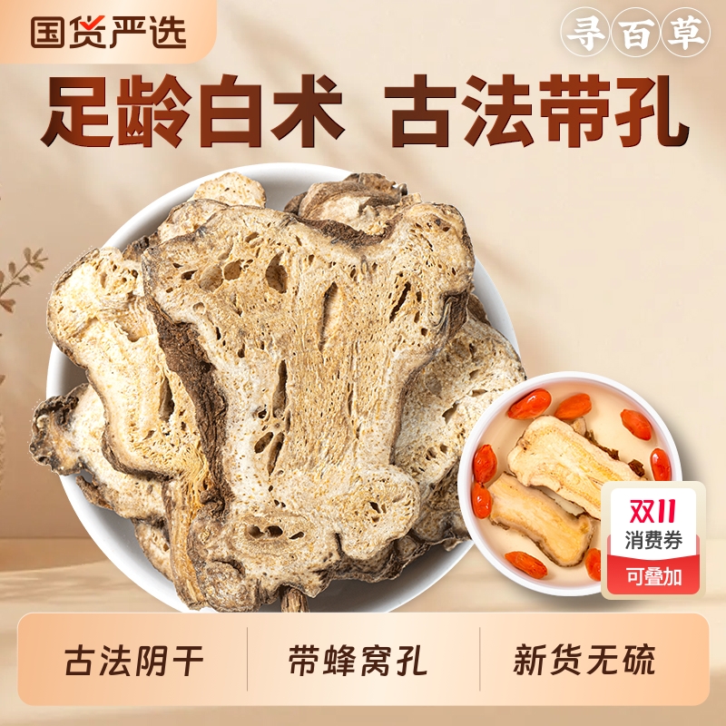 白术中药材泡水喝正品足龄老大片浙白术蜂窝孔生晒白术片白芍茯苓