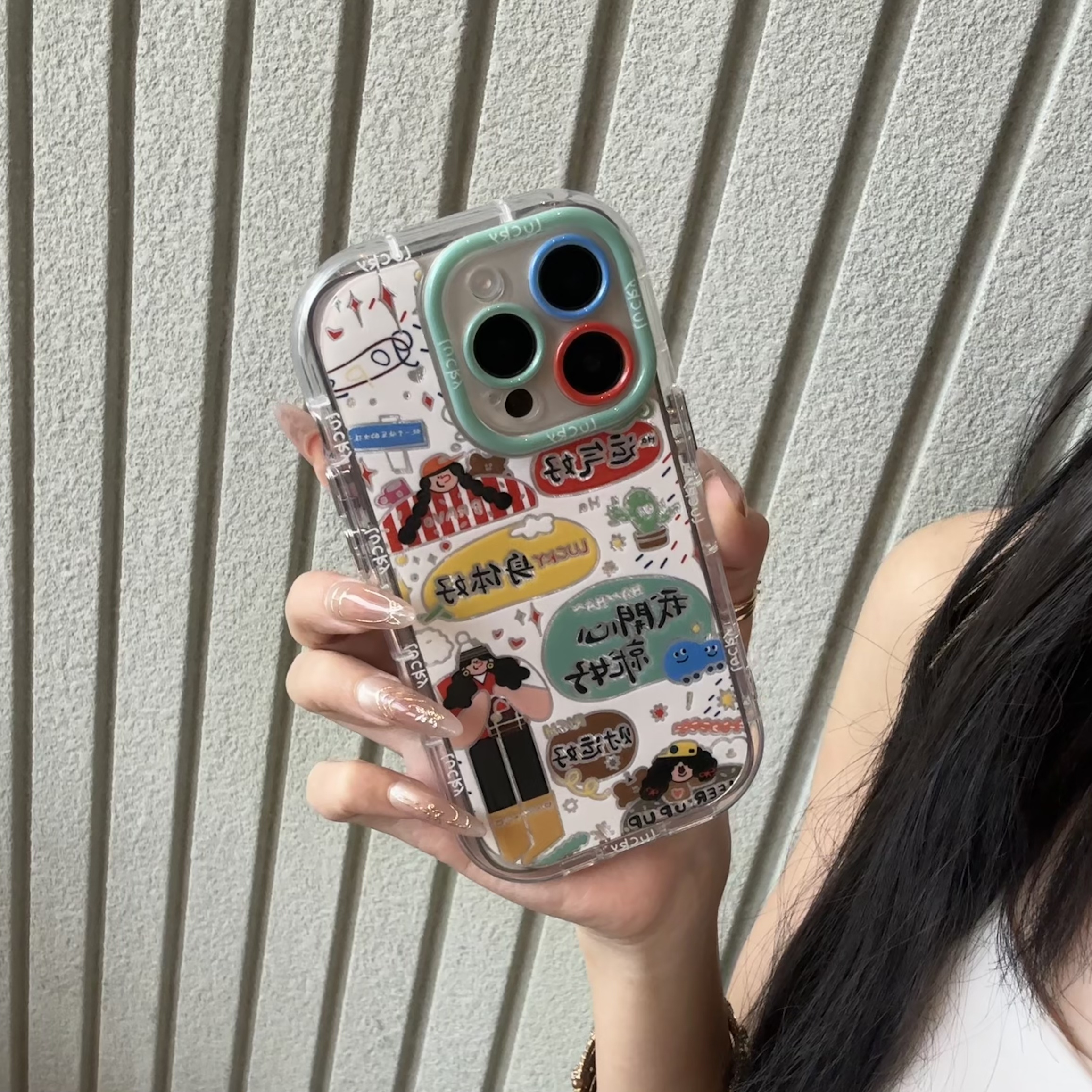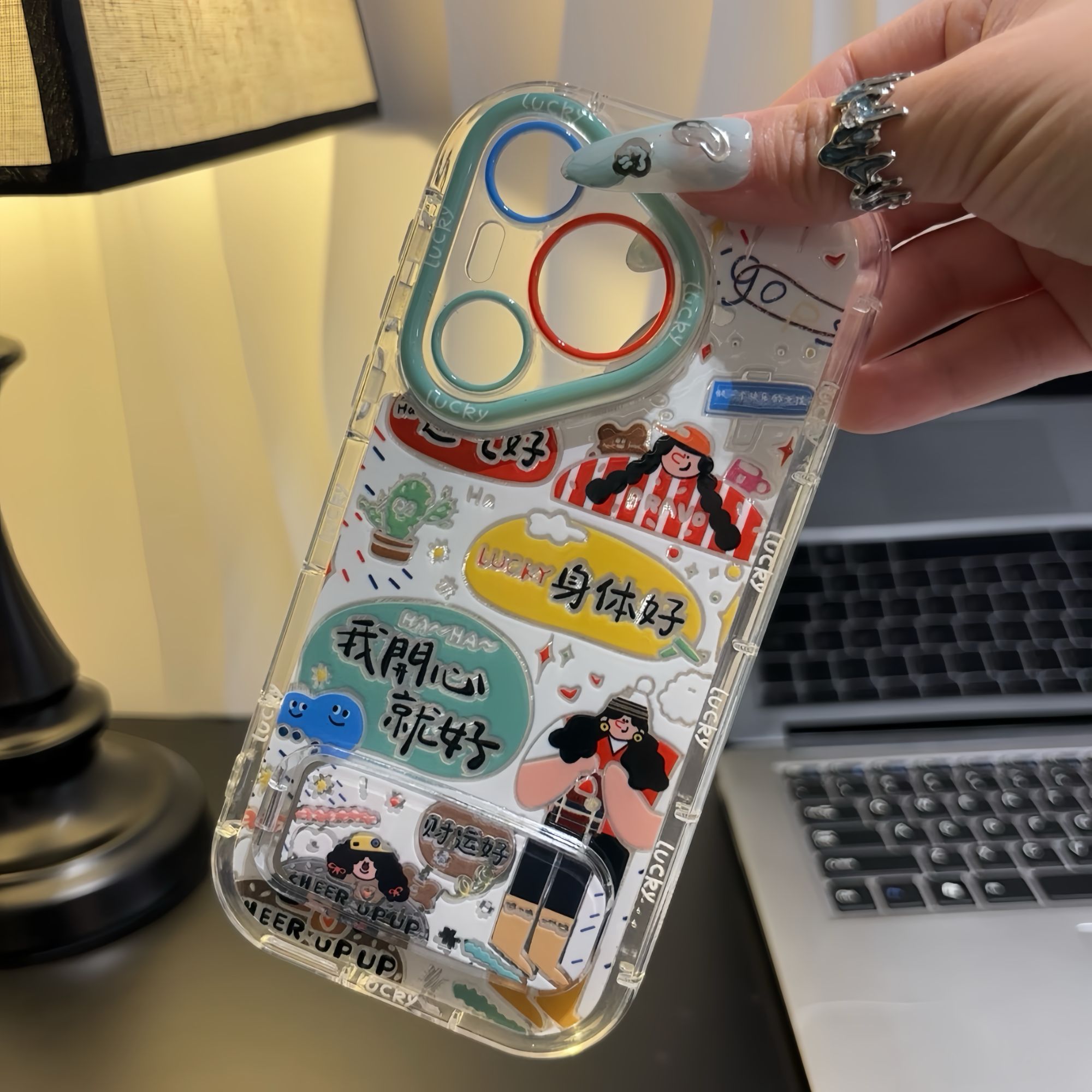 ins涂鸦运气好身体好手机壳