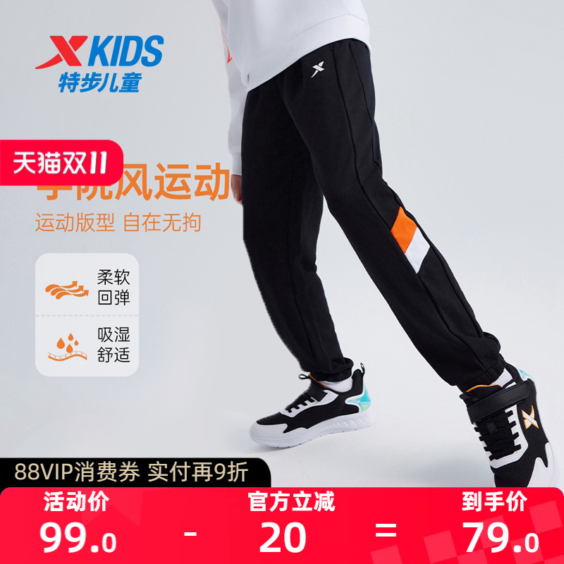 特步童装男童拼接运动裤儿童长裤2024春秋辛苦中大童休闲裤子卫裤