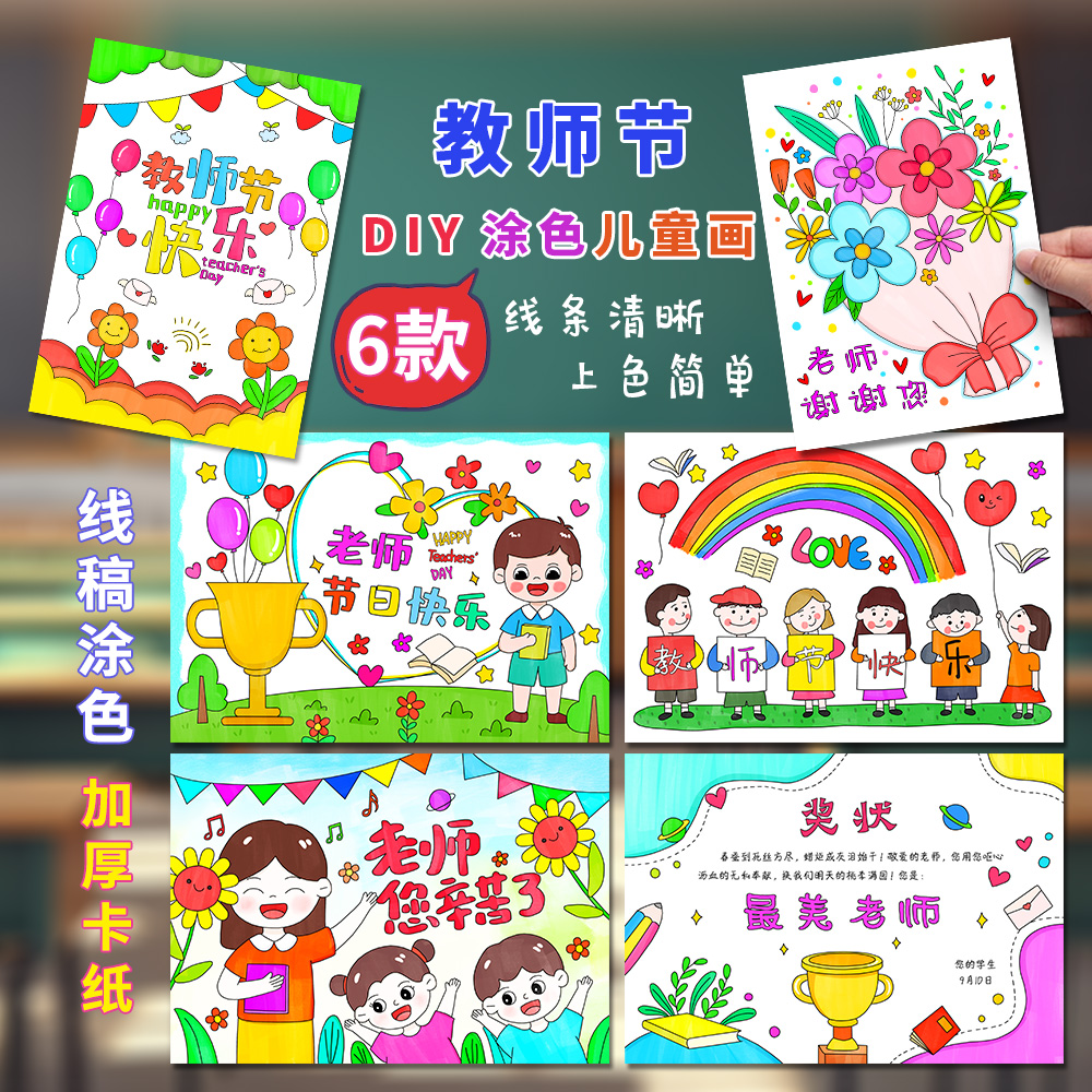 教师节儿童画diy半成品创意涂色