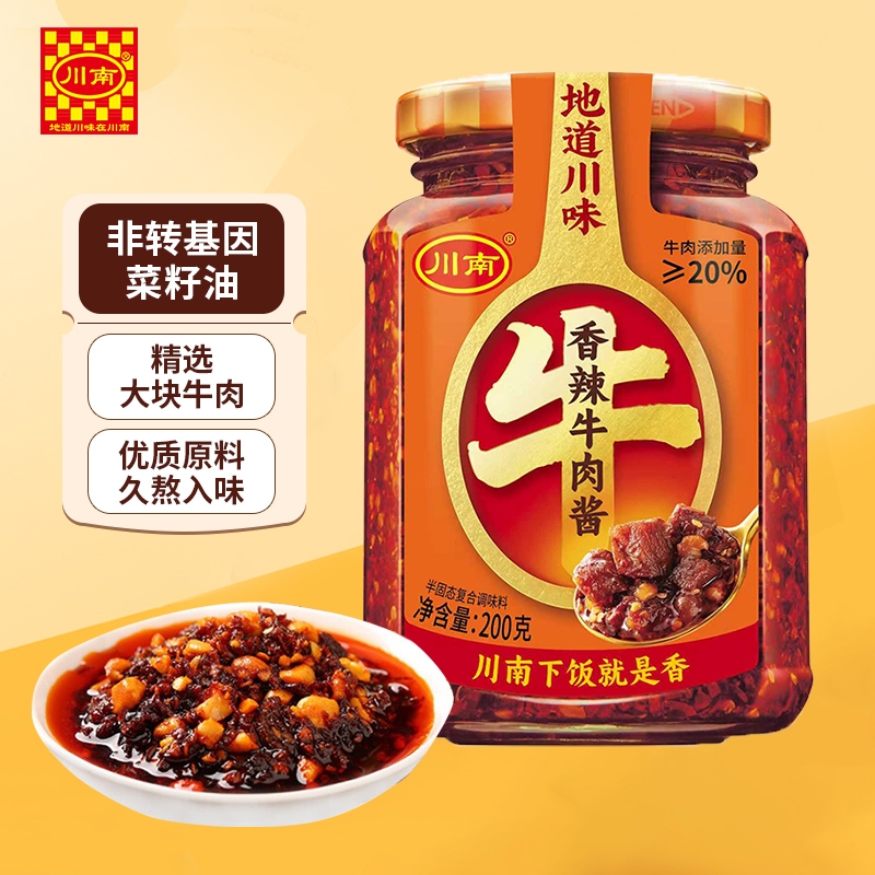 川南香辣牛肉酱香菇牛肉酱四川特产中辣下饭夹馍拌饭面辣椒酱瓶装