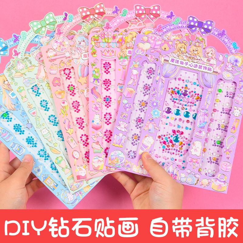 卡通日系唯美3d立体浮雕亚克力钻石宝石贴纸儿童女孩手机装饰贴画