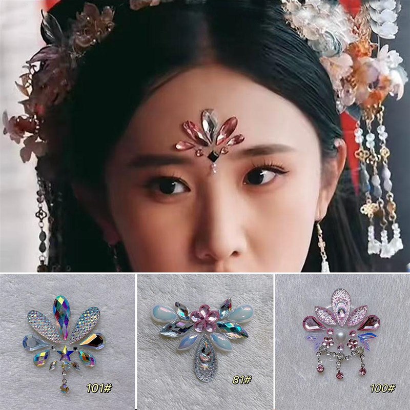 古风眉心贴额头自带胶儿童面部贴彩色系水钻眉心面部化妆配饰流苏