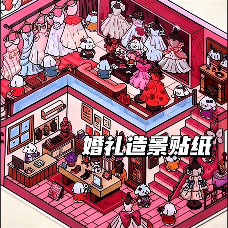 造景贴纸婚礼3d立体趣味装饰女孩儿童手账小屋立体微缩造景贴纸