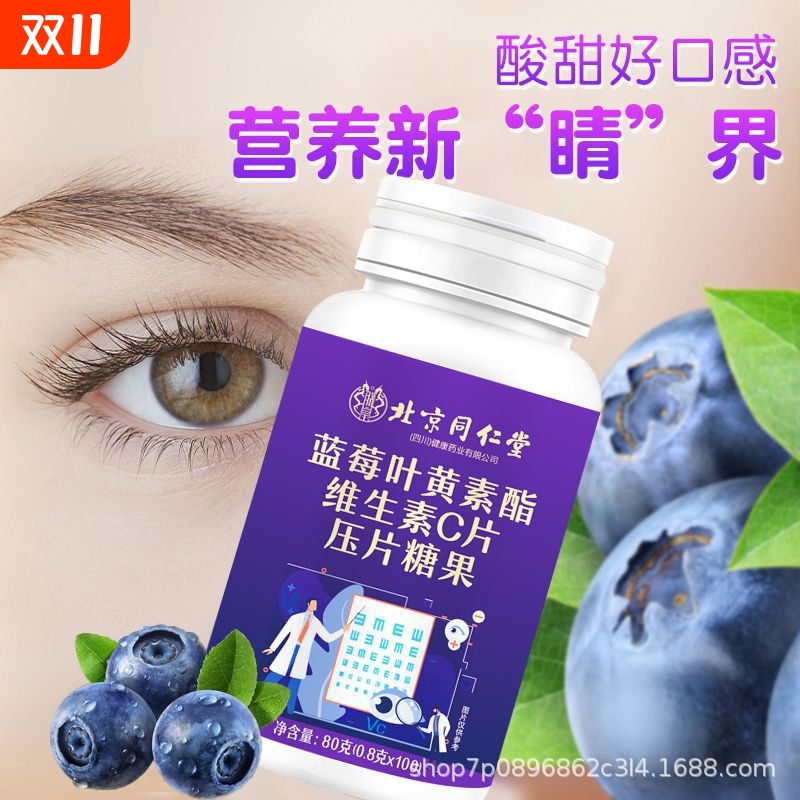 100片】北京同仁堂蓝莓叶黄素酯VC片学生成人搭熬夜用眼过度干涩