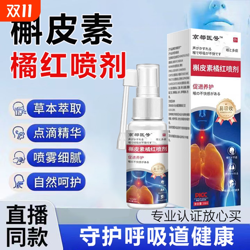 槲皮素橘红喷剂官方旗舰店嗓正品咽喉咙沙哑卡痰用桑过度直播同款