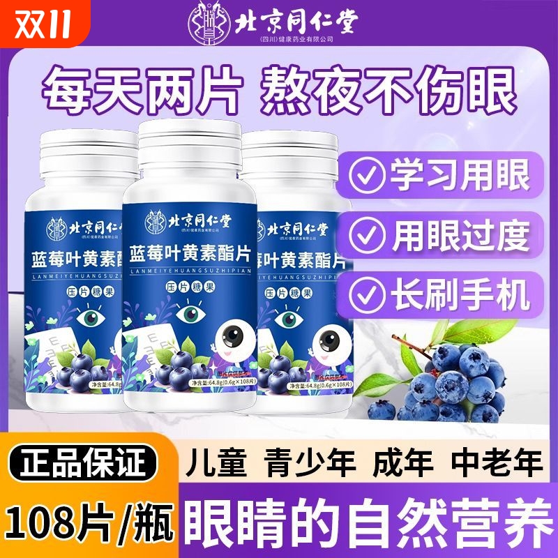 北京同仁堂蓝莓叶黄素酯108片过度用眼刷屏学生中老年滋补经典方